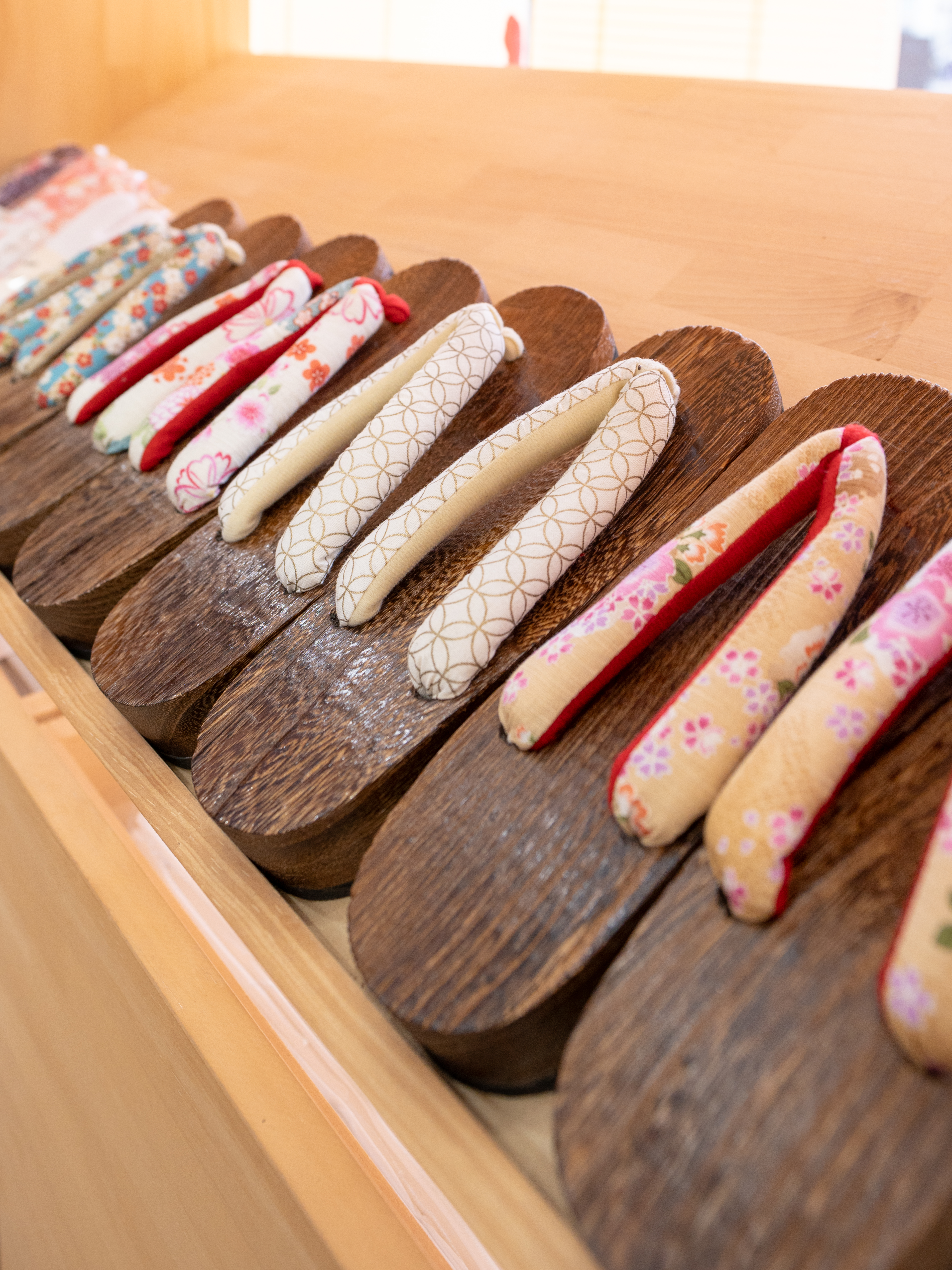 Geta are wooden sandals worn barefoot, featuring a distinct Japanese design that makes them especially popular.