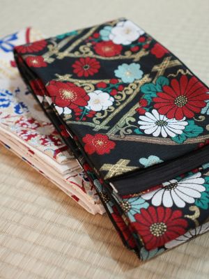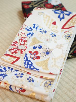 An obi is a belt-like accessory worn over a kimono or yukata.