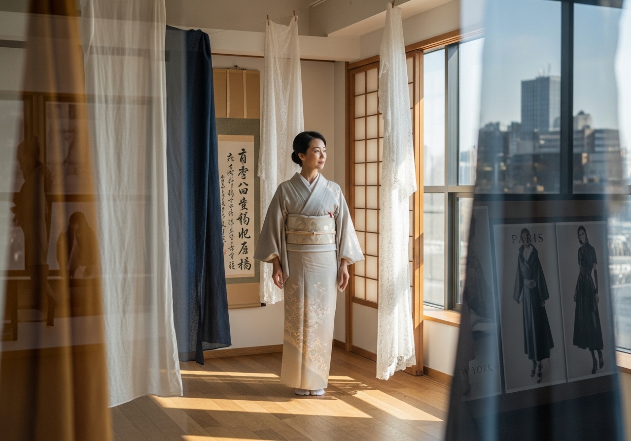 Each reinterpretation — from minimalist linen to avant-garde couture — is a conversation between Japan and the world.