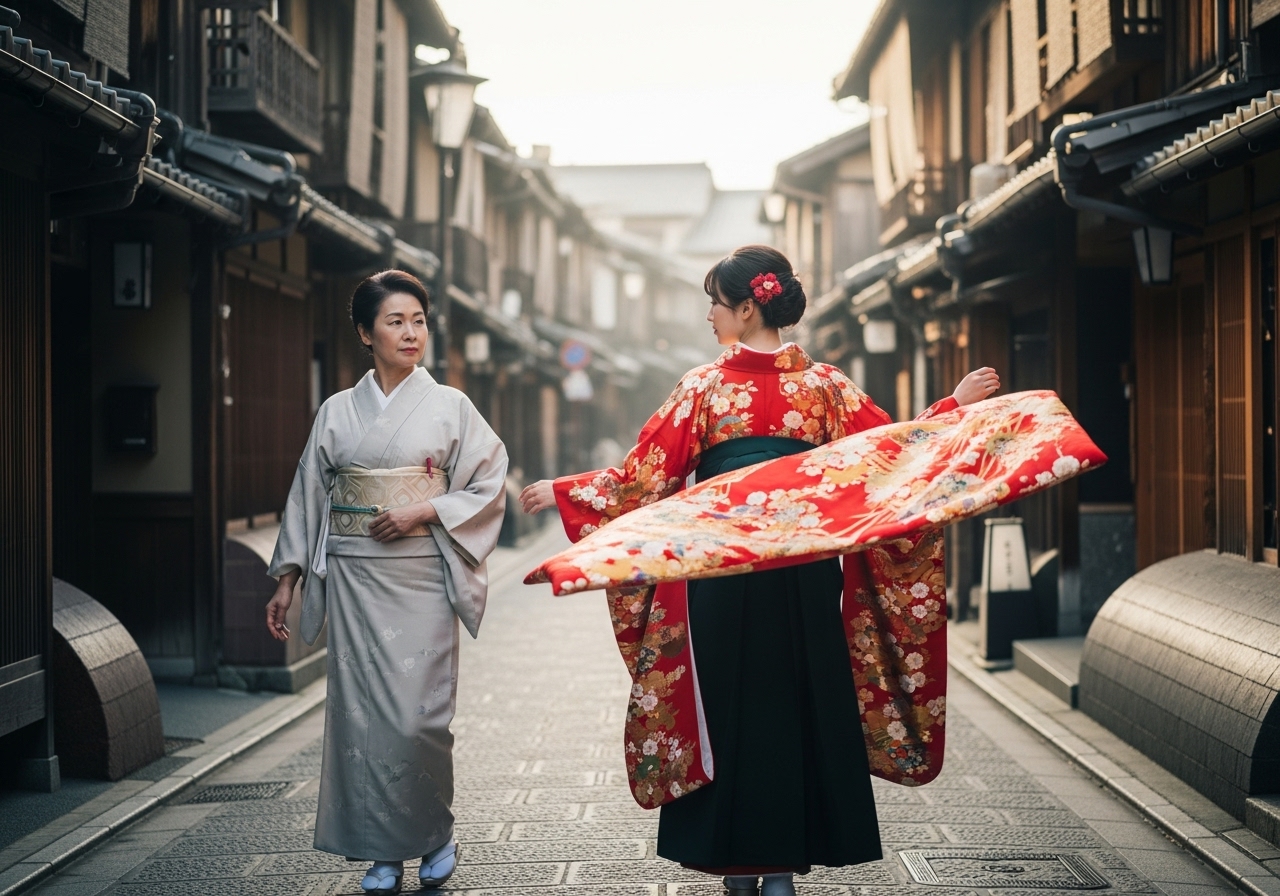 In Japan, the kimono is not just fashion; it’s a bridge between generations, blending elegance and respect in every fold.