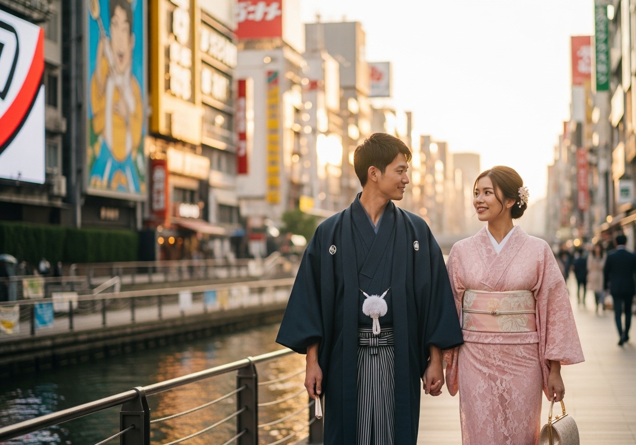 Osaka offers a mix of city energy and cultural charm, making it an ideal place to wear a kimono.